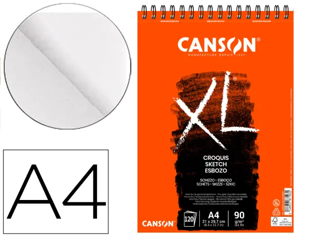 Bloc dibujo canson xl dessin din a4 liso microperforado espiral 21x29,7 cm 50 hojas 160 gr