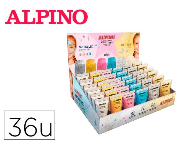 Expositor alpino gel maquillaje 24 glittter gel metalico + 12 glitter gel