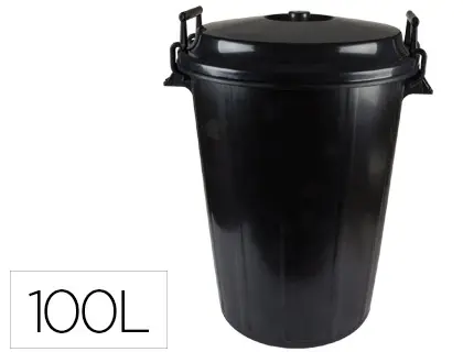 Cubo de basura negro con tapa para bolsas 85x105cm 100 litros